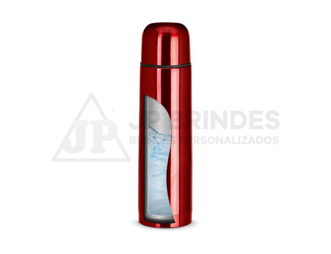 Garrafa em aço inox com parede dupla isolada a vácuo (térmico). Capacidade até 500 mL. Food grade. Fornecidaem caixa branca. ø70 x 245 mm.