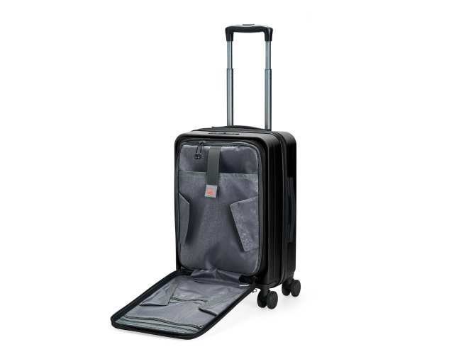Mala de bordo 32 litros, resistente e funcional! Produzida em plástico ABS, conta com cadeado numérico TSA embutido para mais segurança. Seu design inteligente traz abertura frontal com bolso para notebook de até 15.6, além de divisórias internas com zíperes e cinta compressora para roupas. Precisa de mais espaço? O zíper externo expansível se encarrega de ampliar a capacidade da mala. Para facilitar o transporte, possui puxador retrátil de 3 estágios, duas alças de mão, apoios e ganchos laterais e rodinhas 360º, proporcionando mobilidade total. Acompanha plaquinha metálica grafite personalizável.