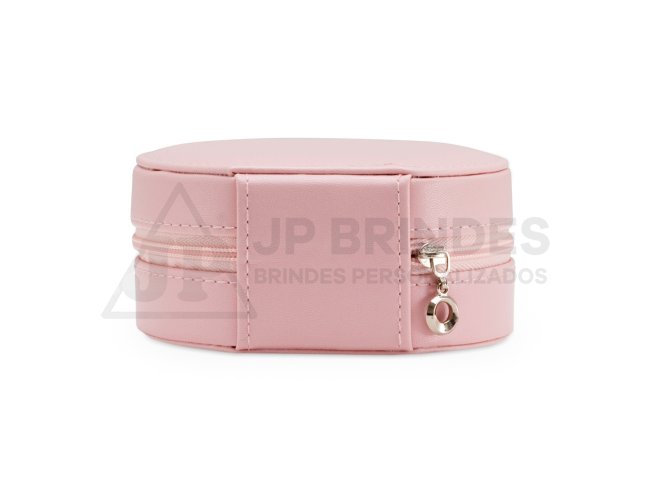 Porta joias de couro sintético com revestimento aveludado. Possui compartimentos internos para anéis, brincos, pulseiras e colares.