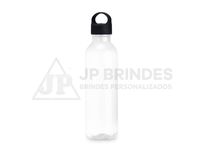 Garrafa plástica de 750ml com tampa rosqueável e bocal, tampa protetora e alça para facilitar o transporte.
